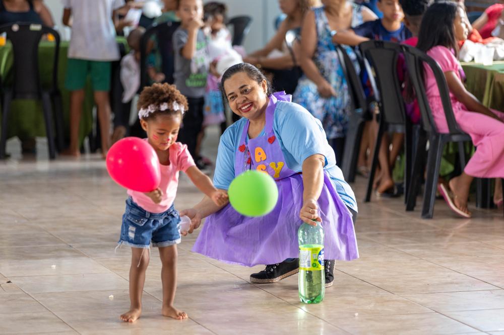 A manhã foi repleta de sorrisos, brincadeiras e diversão: teve música, pula-pula, piscina de bolinhas, pintura de rosto, lanches deliciosos e, claro, a tão esperada entrega de brinquedos para a garotada.