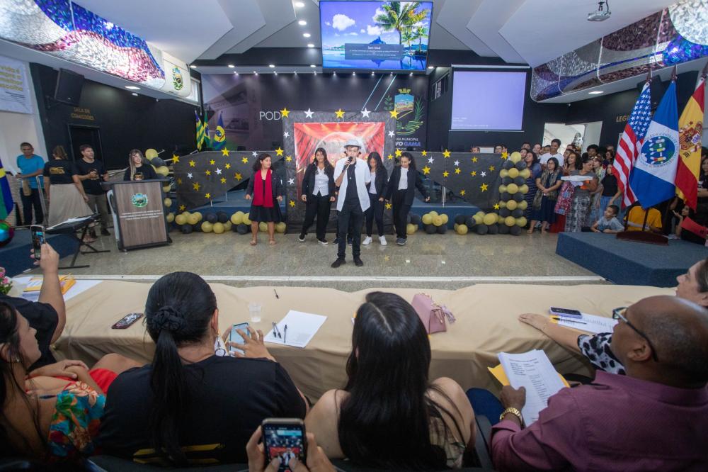 Na tarde de hoje (1), o plenário da Câmara Municipal de Novo Gama se transformou em palco para o tradicional show de calouros promovido pelo Centro Municipal de Línguas. O evento faz parte do plano de ação semestral da instituição e reuniu apresentações em inglês, espanhol, português e Libras, permitindo que os estudantes colocassem em prática o que aprendem em sala de aula.