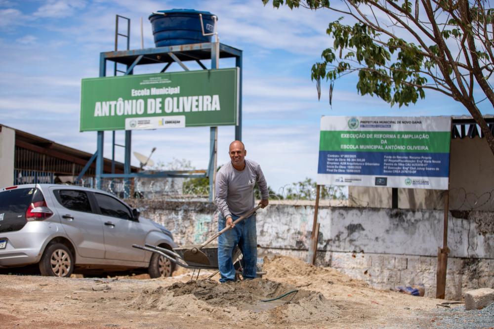 As obras de reforma e ampliação da Escola Antônio de Oliveira, no Residencial Brasília, avançam com rapidez. A etapa que contempla a construção das duas novas salas de aula já foi concluída, com piso pronto e telhado instalado, e a unidade segue agora para a próxima fase do projeto de modernização.