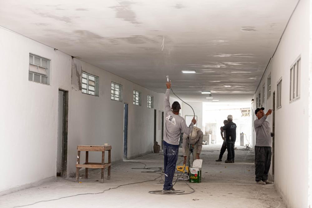 As obras de reforma e ampliação da Escola Elízia da Conceição, no Vale do Pedregal, avançam e já começam a transformar a estrutura da unidade. As novas salas de aula foram construídas, os telhados estão instalados e alguns setores já começaram a receber pintura de proteção e revestimentos, etapa que marca a fase de acabamento das intervenções.