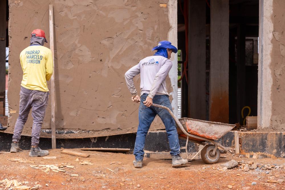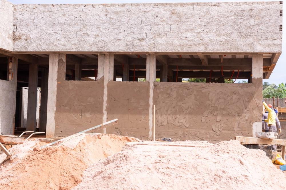 A obra encontra-se em fase avançada de execução, com a realização dos serviços de reboco das paredes e a implantação dos pontos destinados às instalações elétricas e hidráulicas, etapas fundamentais para assegurar qualidade, segurança e eficiência no funcionamento da unidade.