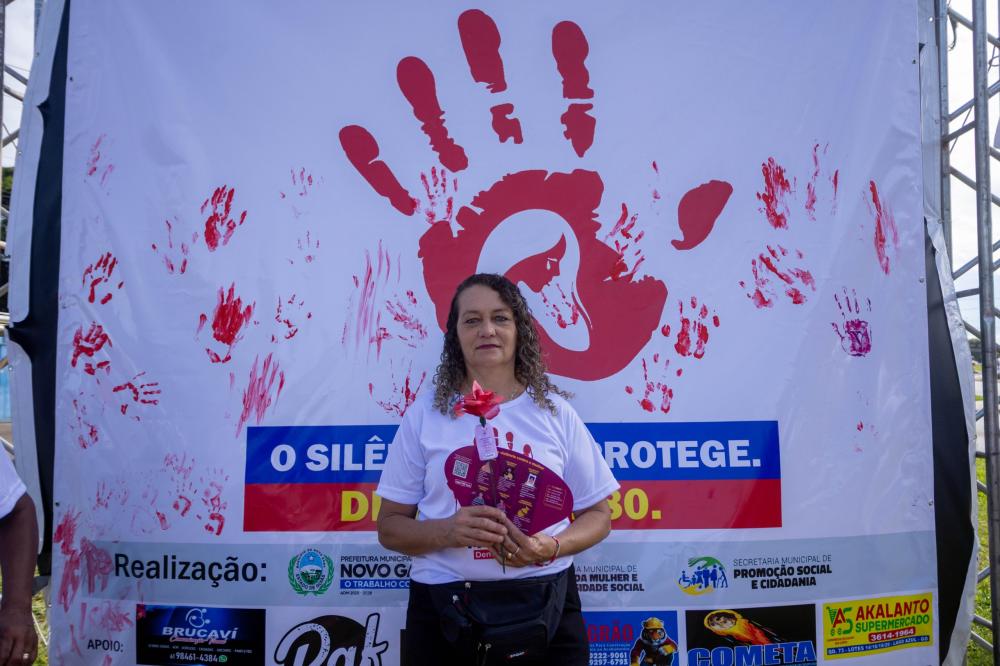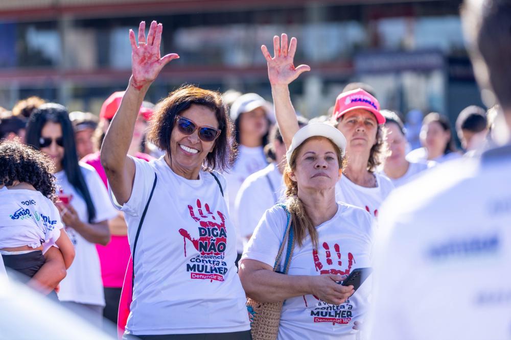 A mobilização teve início em frente ao Atacadão Dia a Dia e seguiu em caminhada até a Igreja Nossa Senhora Imaculada Conceição, marcando um percurso simbólico de união, reflexão e fortalecimento da luta pelo respeito e pelos direitos das mulheres.