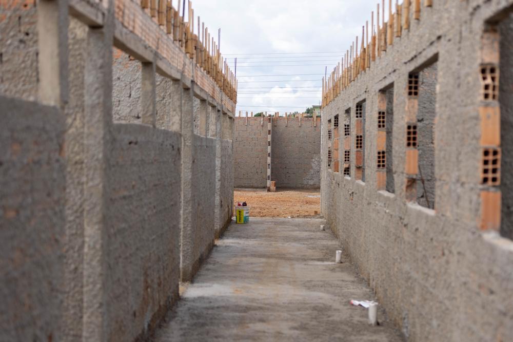 Atualmente, a fundação da unidade já foi finalizada, etapa essencial que garante a sustentação da obra. Na sequência, os muros de alvenaria foram levantados, definindo os espaços físicos da escola e contribuindo para a segurança do local.