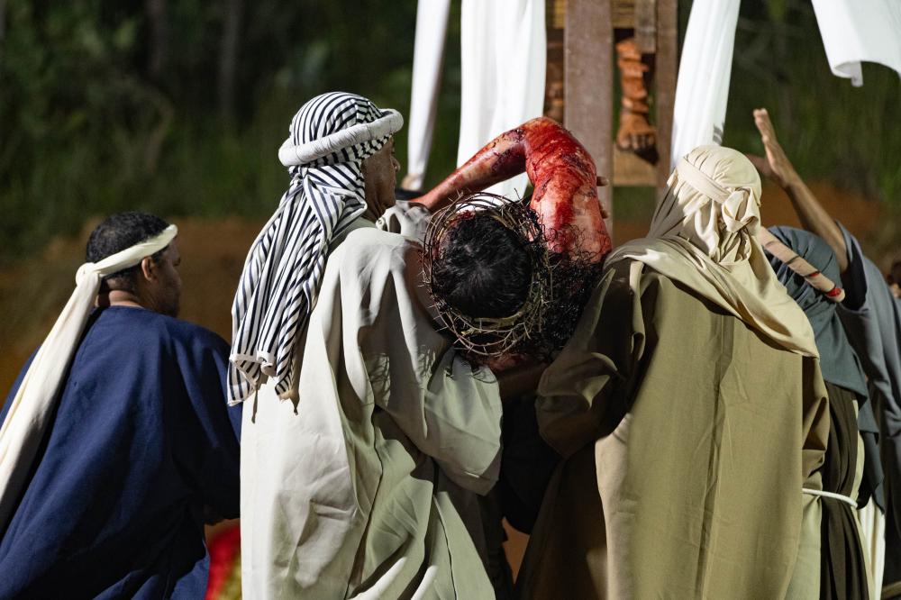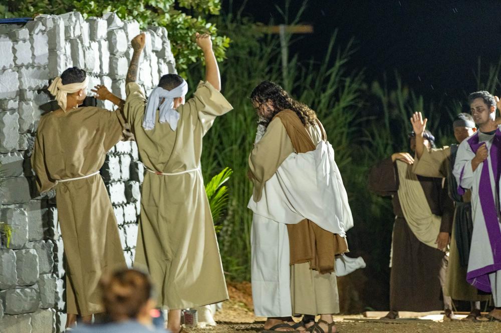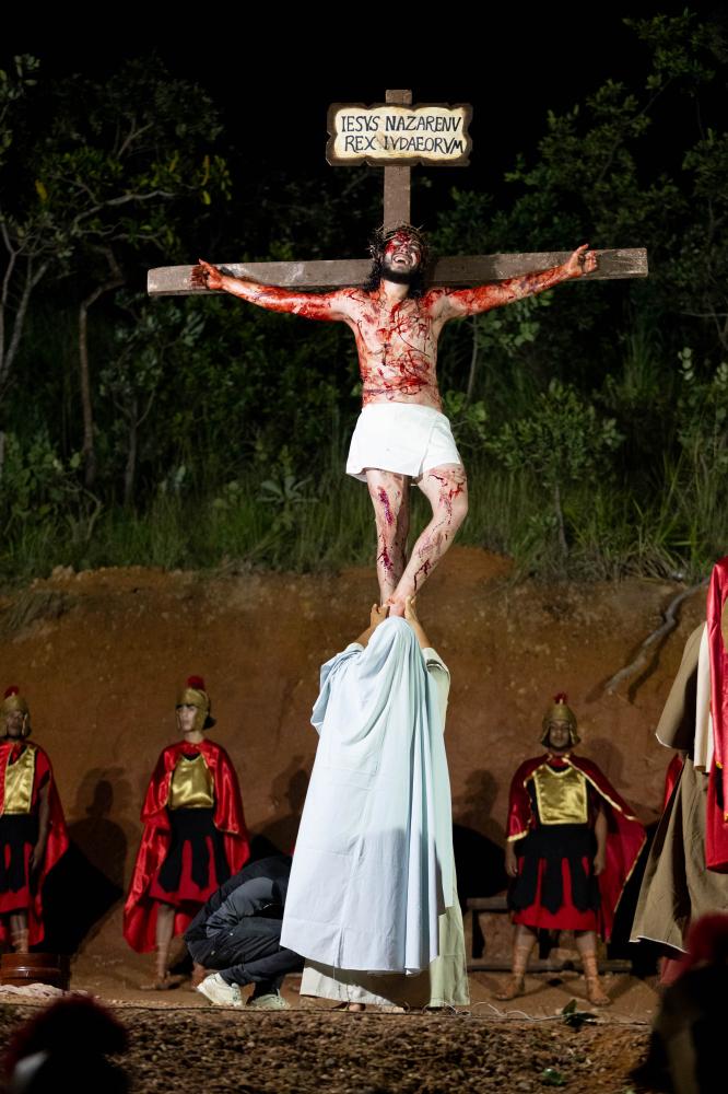 A apresentação foi conduzida pelo Grupo Via Sacra de Novo Gama, responsável por levar ao público uma interpretação marcante e carregada de emoção, que prendeu a atenção do início ao fim. A dedicação dos envolvidos foi evidenciada em cada detalhe, desde os cenários até a atuação dos personagens.