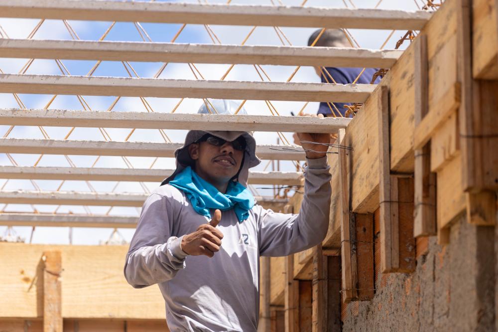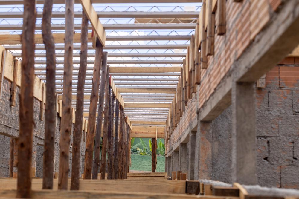 As obras da nova unidade escolar CMEI Dora A Aventureira seguem avançando e já entram em uma nova fase. Com a fundação concluída e as paredes de alvenaria erguidas, os trabalhos agora avançam para a etapa de preparação da laje, dando continuidade ao cronograma da construção.