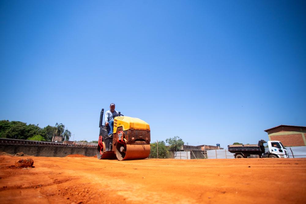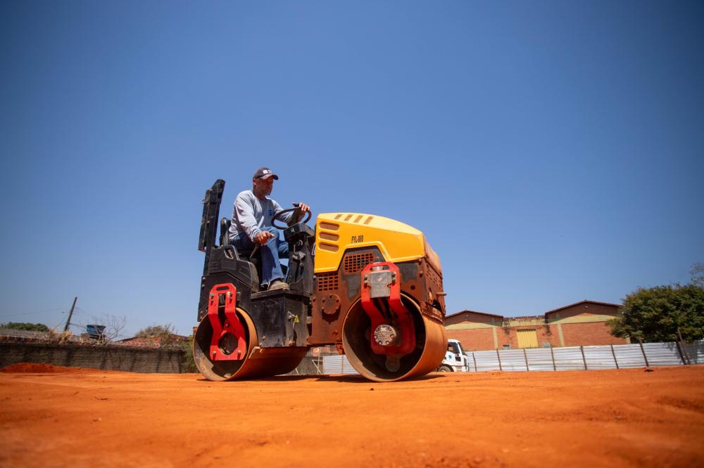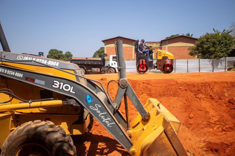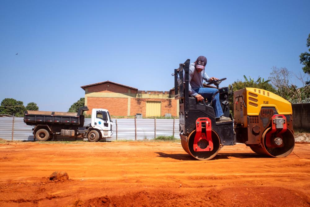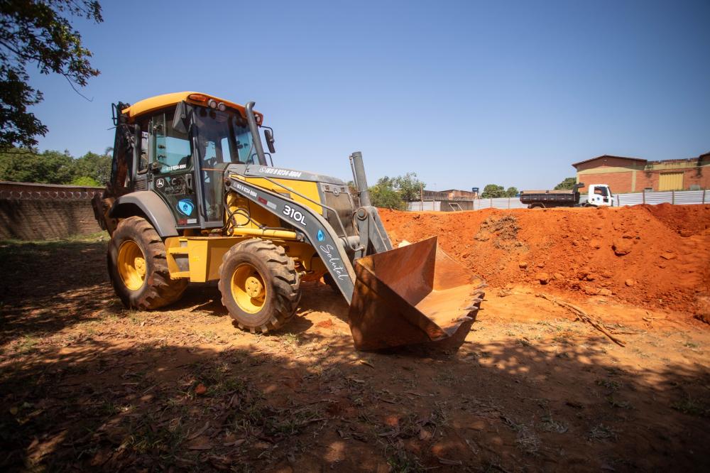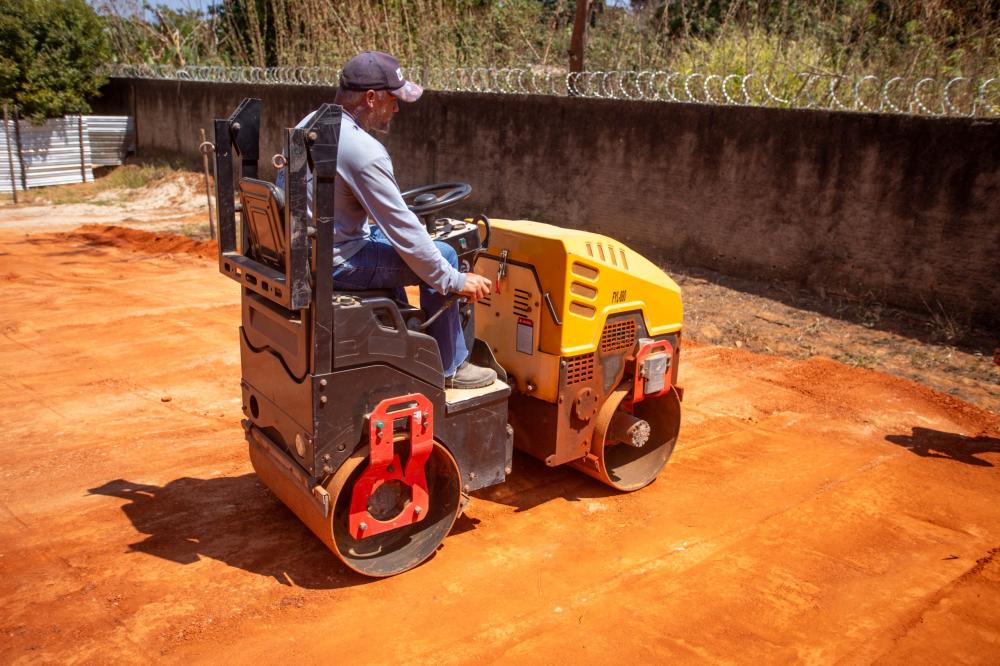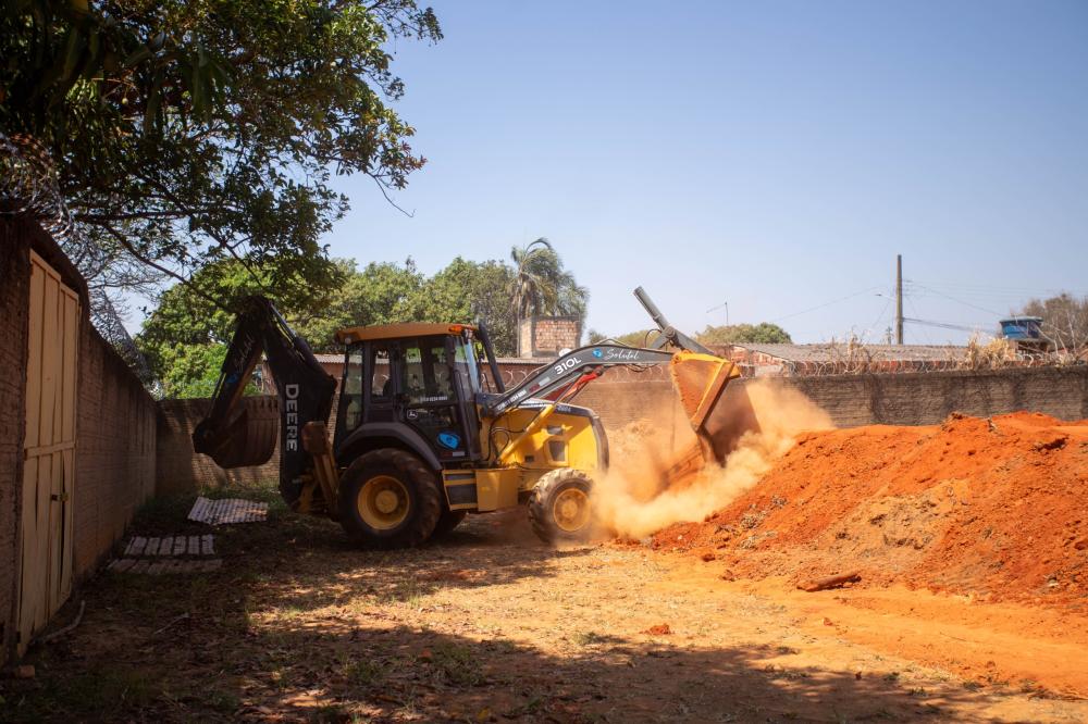 Terreno passa por nivelamento para receber estrutura de mais de 460 metros quadrados voltada às práticas esportivas
