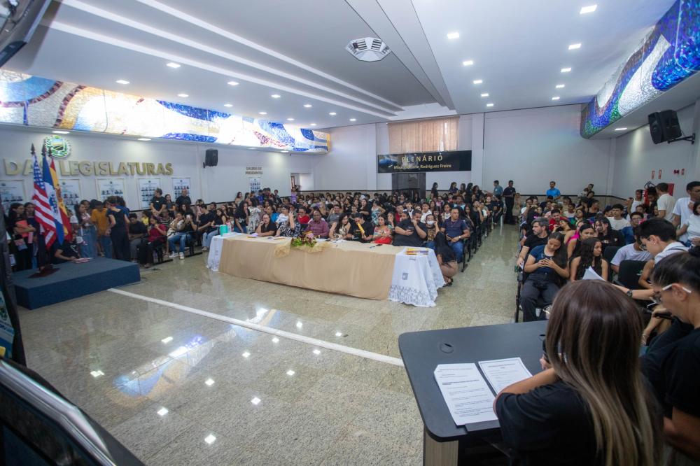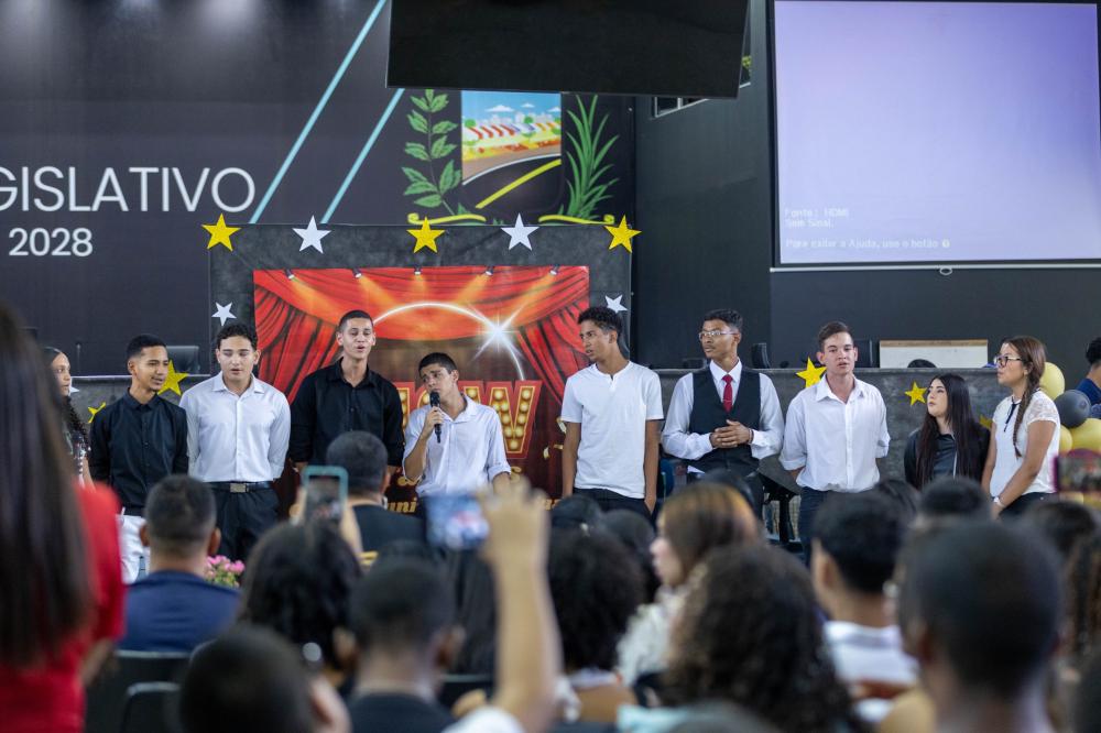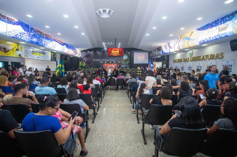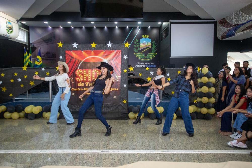 Na tarde de hoje (1), o plenário da Câmara Municipal de Novo Gama se transformou em palco para o tradicional show de calouros promovido pelo Centro Municipal de Línguas. O evento faz parte do plano de ação semestral da instituição e reuniu apresentações em inglês, espanhol, português e Libras, permitindo que os estudantes colocassem em prática o que aprendem em sala de aula.