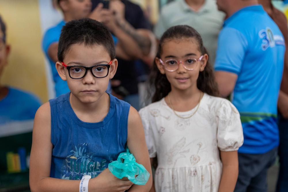Na primeira etapa, mais de 600 crianças receberam o benefício. Já nesta segunda fase, realizada no Ginásio de Esportes da Parada 14, no Pedregal, foram entregues 501 óculos para estudantes das escolas Bela Vista, Carla Moana, Dom Bosco, Paulo Freire e Paulo Souza Rocha.