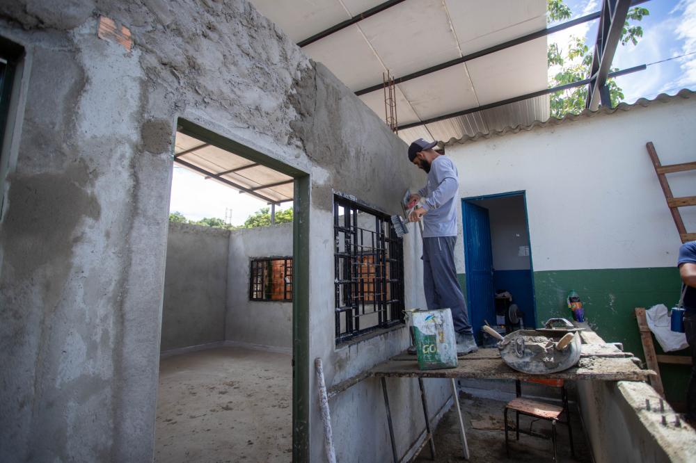 As obras de reforma e ampliação da Escola Antônio de Oliveira, no Residencial Brasília, avançam com rapidez. A etapa que contempla a construção das duas novas salas de aula já foi concluída, com piso pronto e telhado instalado, e a unidade segue agora para a próxima fase do projeto de modernização.