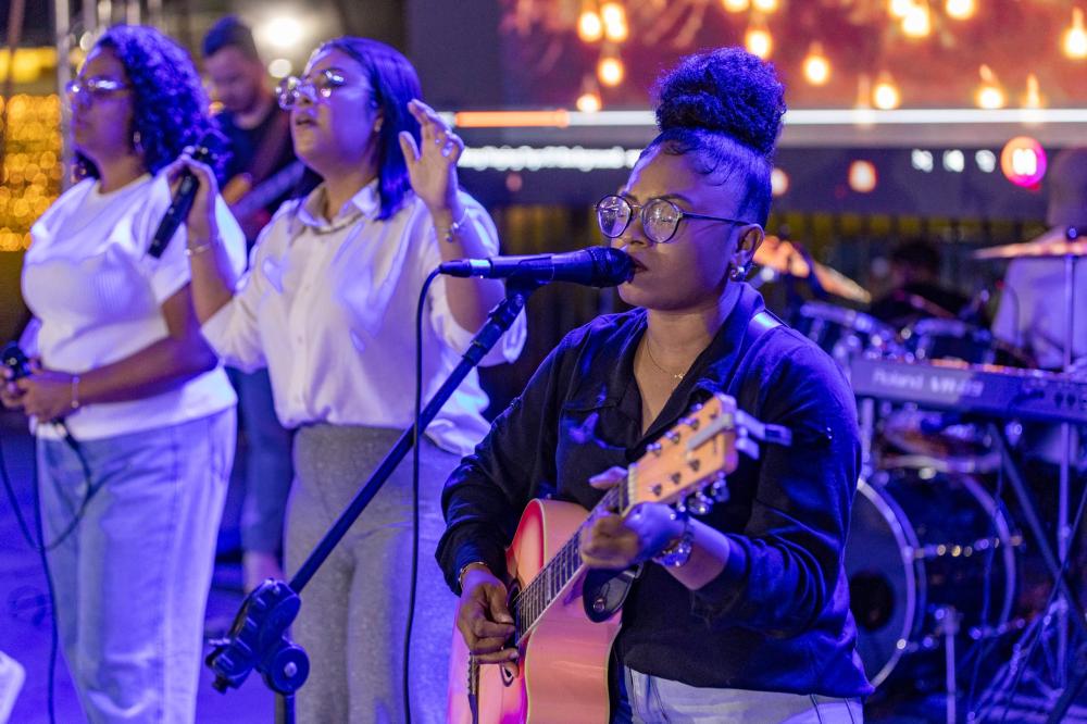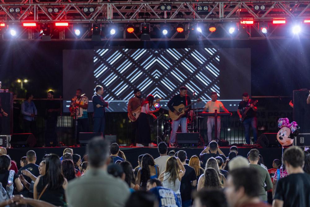 Bandas locais conduziram momentos de louvor e a praça recebeu estrutura com barracas para receber famílias e visitantes