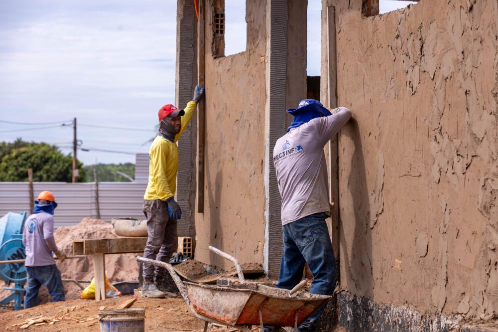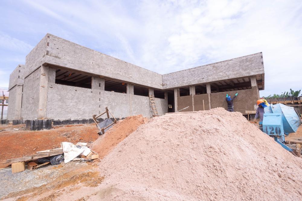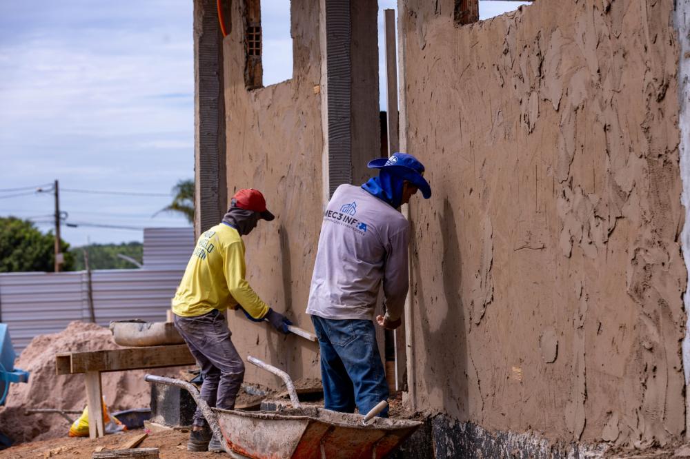 A obra encontra-se em fase avançada de execução, com a realização dos serviços de reboco das paredes e a implantação dos pontos destinados às instalações elétricas e hidráulicas, etapas fundamentais para assegurar qualidade, segurança e eficiência no funcionamento da unidade.
