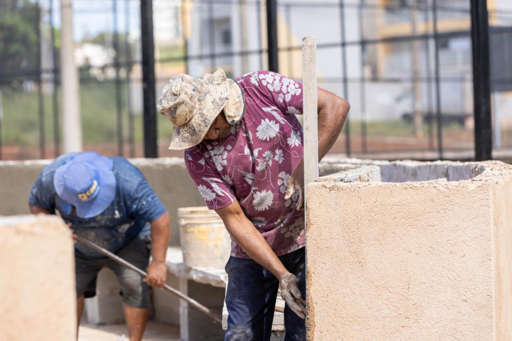 Além das estruturas de convivência, as obras também avançam na preparação das áreas destinadas à arborização. Esses espaços estão sendo construídos para receber o plantio de árvores, contribuindo para o sombreamento, o conforto térmico e a valorização ambiental da praça.