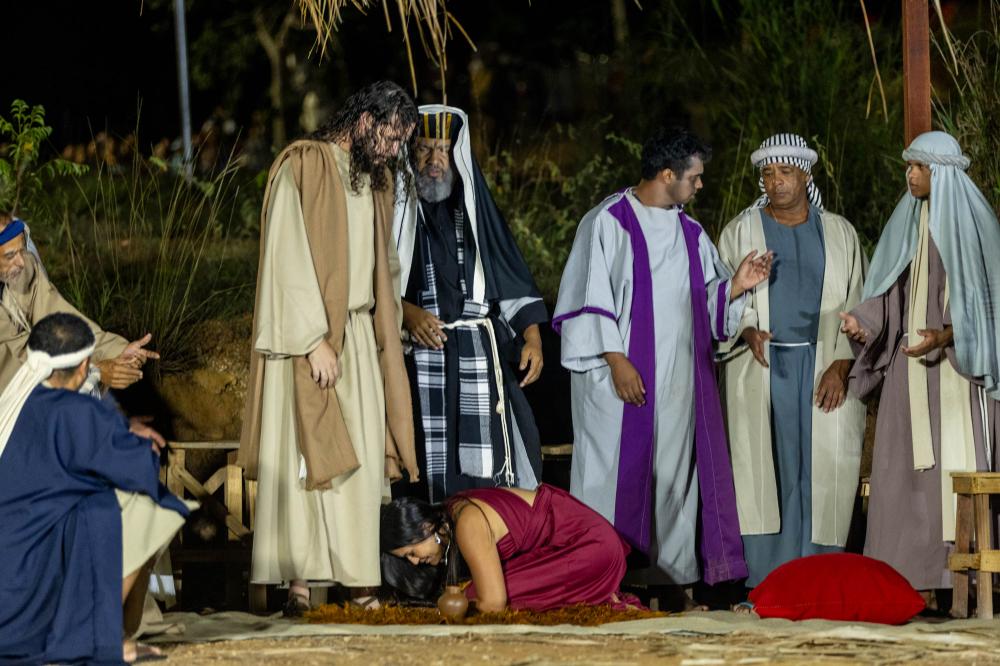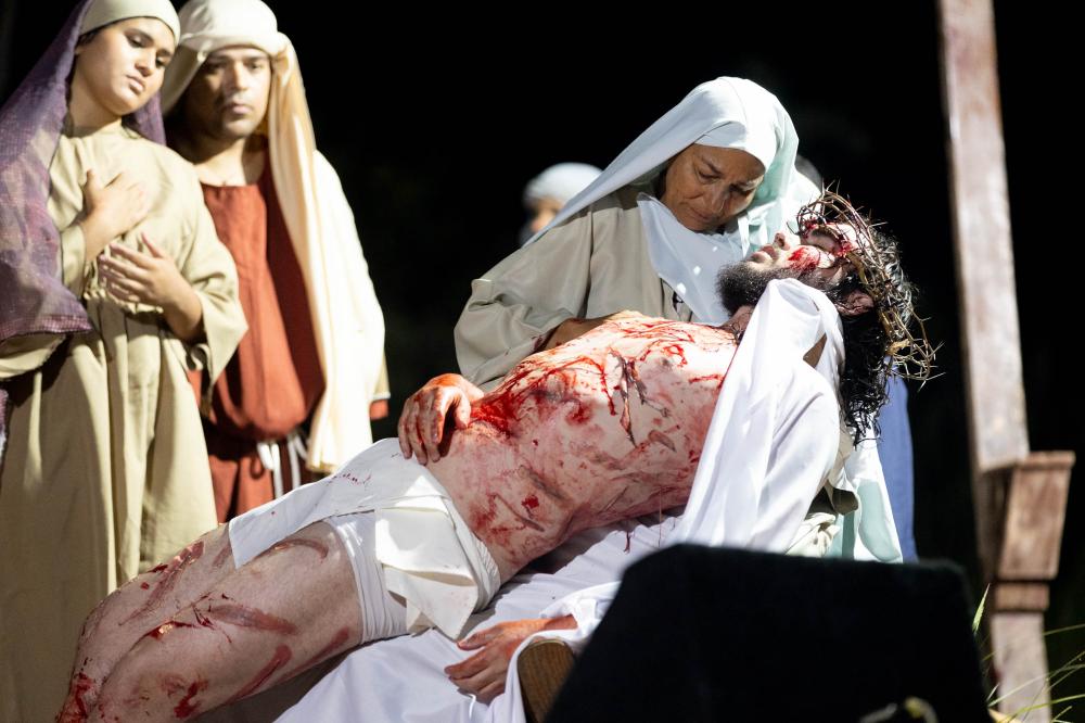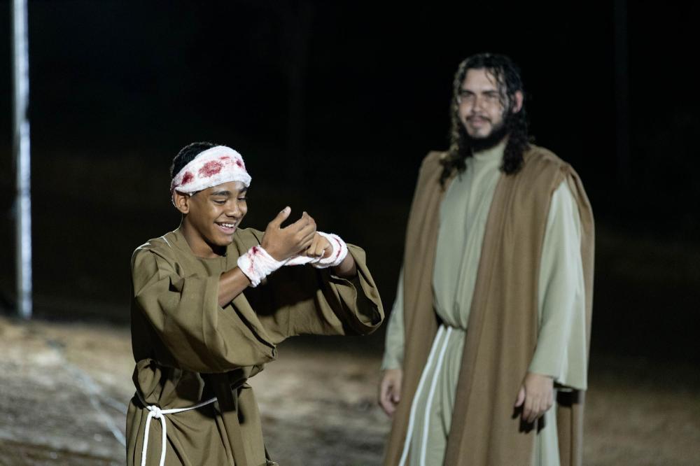 A apresentação foi conduzida pelo Grupo Via Sacra de Novo Gama, responsável por levar ao público uma interpretação marcante e carregada de emoção, que prendeu a atenção do início ao fim. A dedicação dos envolvidos foi evidenciada em cada detalhe, desde os cenários até a atuação dos personagens.