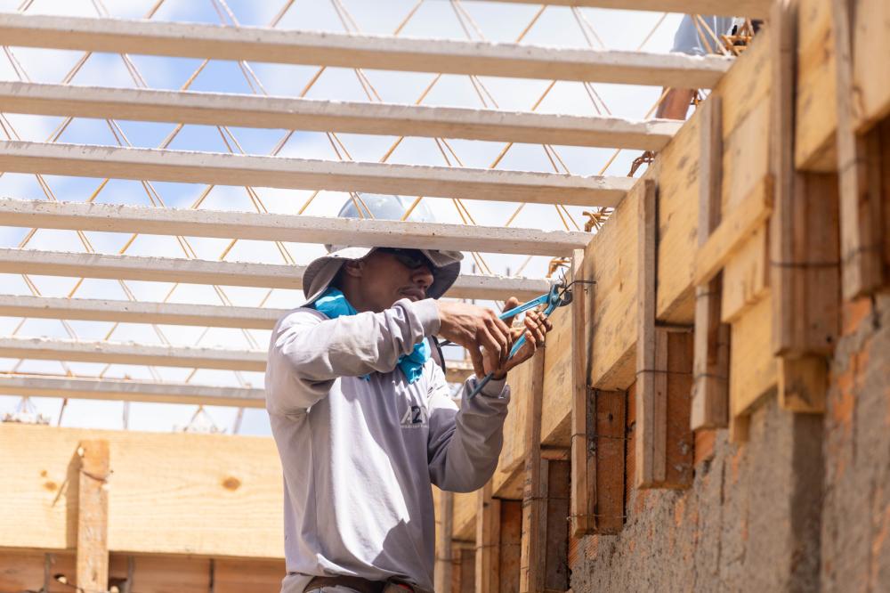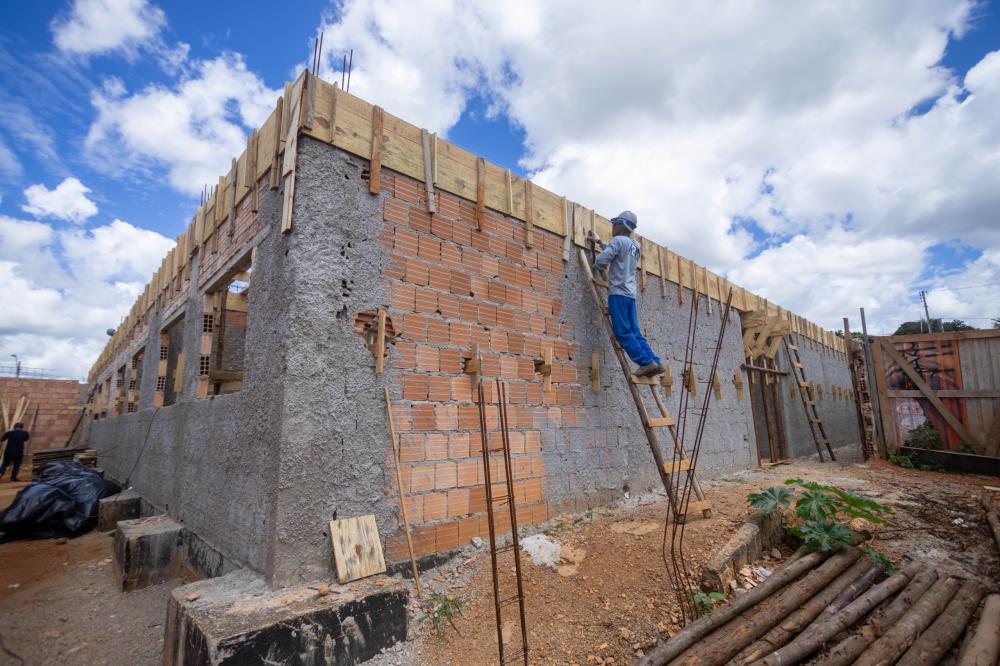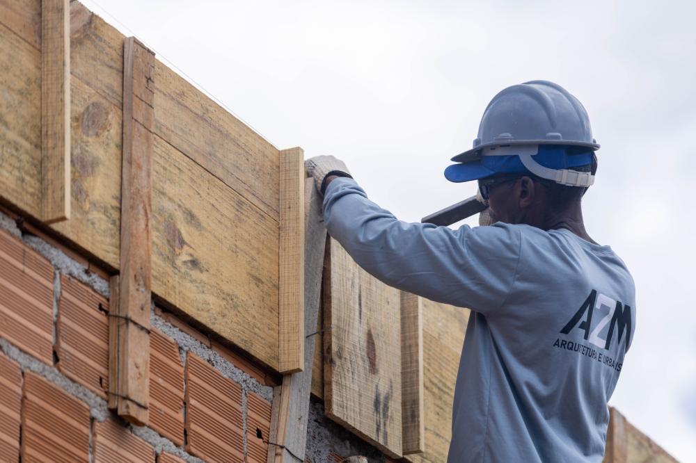 As obras da nova unidade escolar CMEI Dora A Aventureira seguem avançando e já entram em uma nova fase. Com a fundação concluída e as paredes de alvenaria erguidas, os trabalhos agora avançam para a etapa de preparação da laje, dando continuidade ao cronograma da construção.